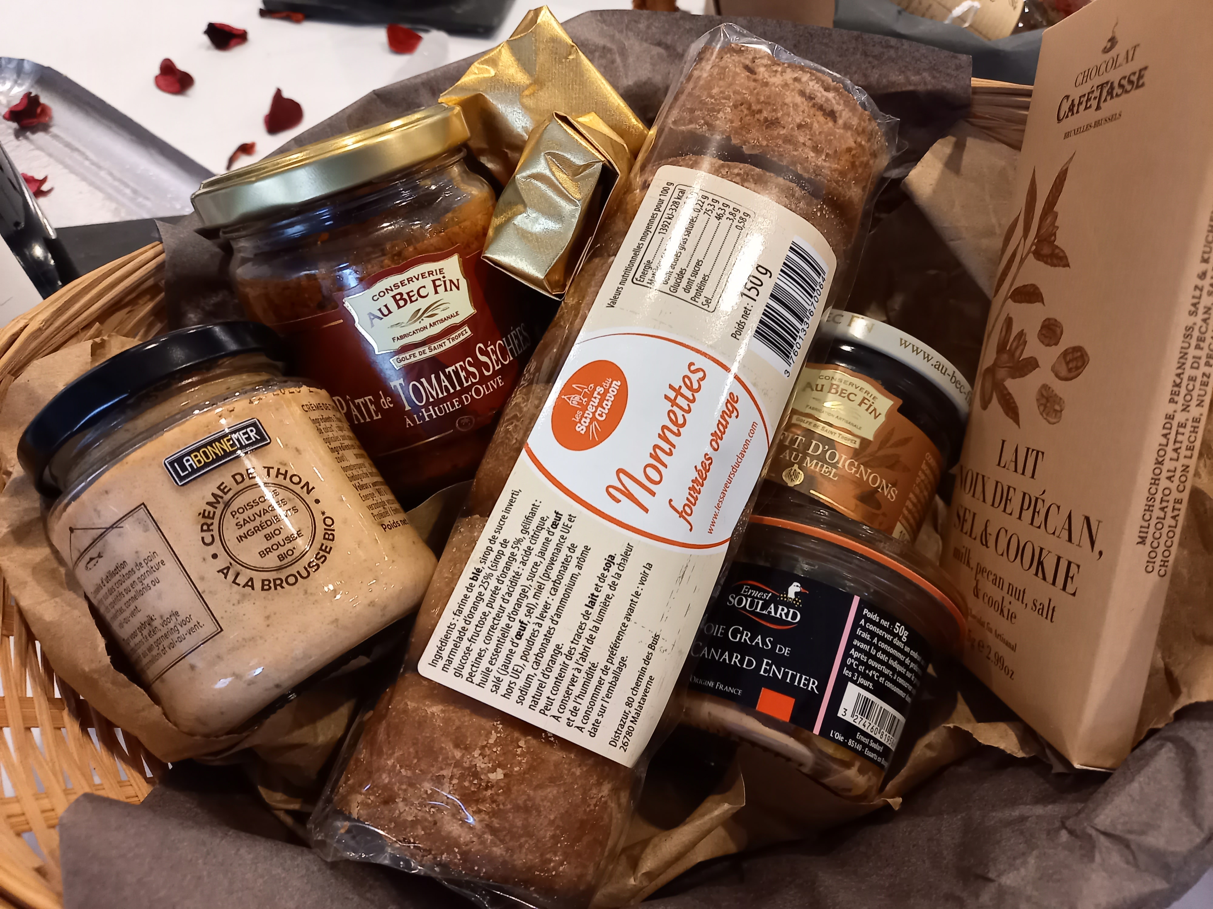 Cadeaux idéals pour vos évènements familiaux ou repas entre amis, vos panières sucrées ou salées sauront raviver vos papilles.